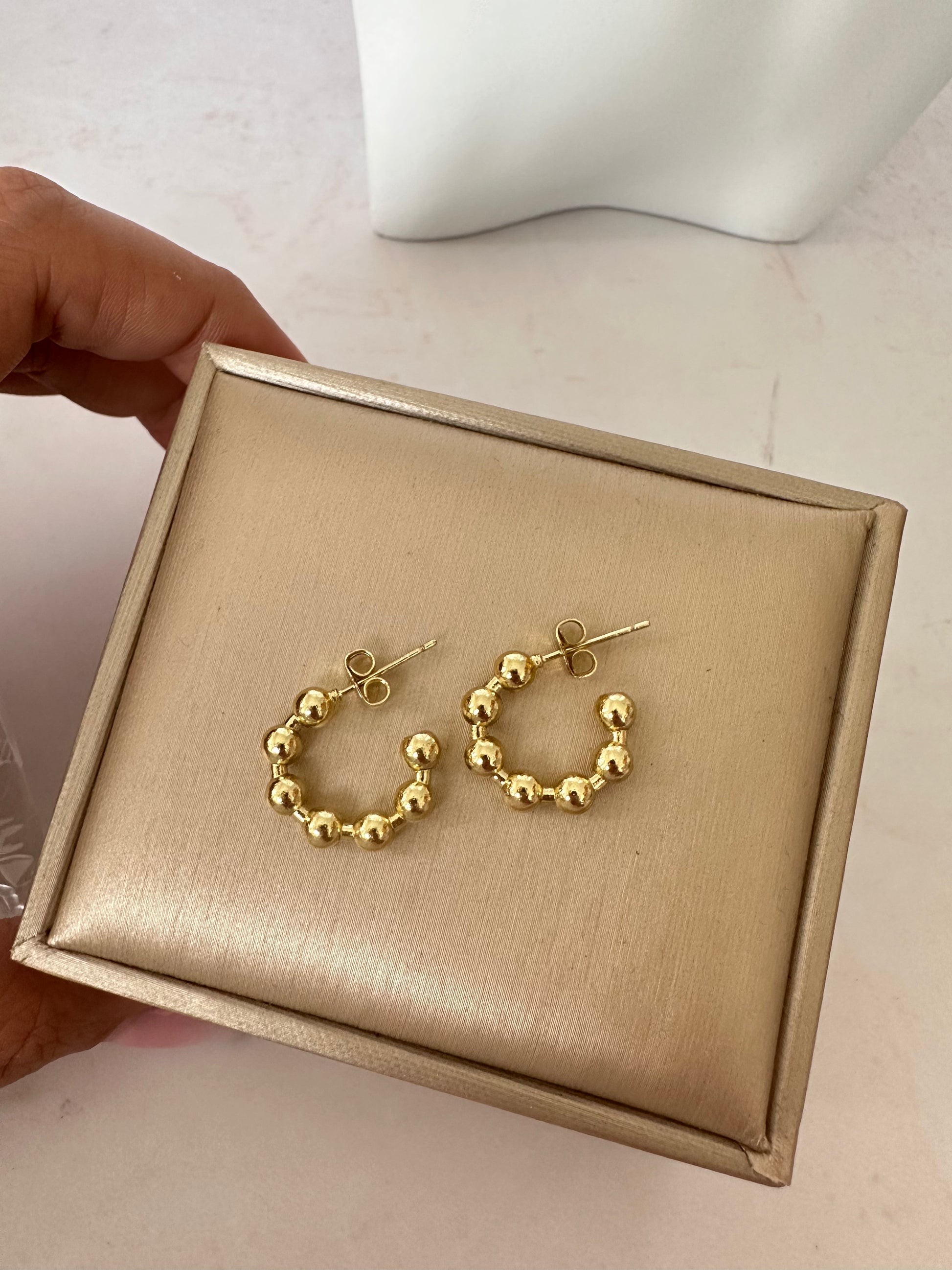 💫 Con forma de media luna, en color dorado con perlas, y tamaño pequeño, estos aretes destacan por su diseño moderno y versátil. Disponible para entrega inmediata, según el estilo, son ideales para usar a diario o en ocasiones especiales.