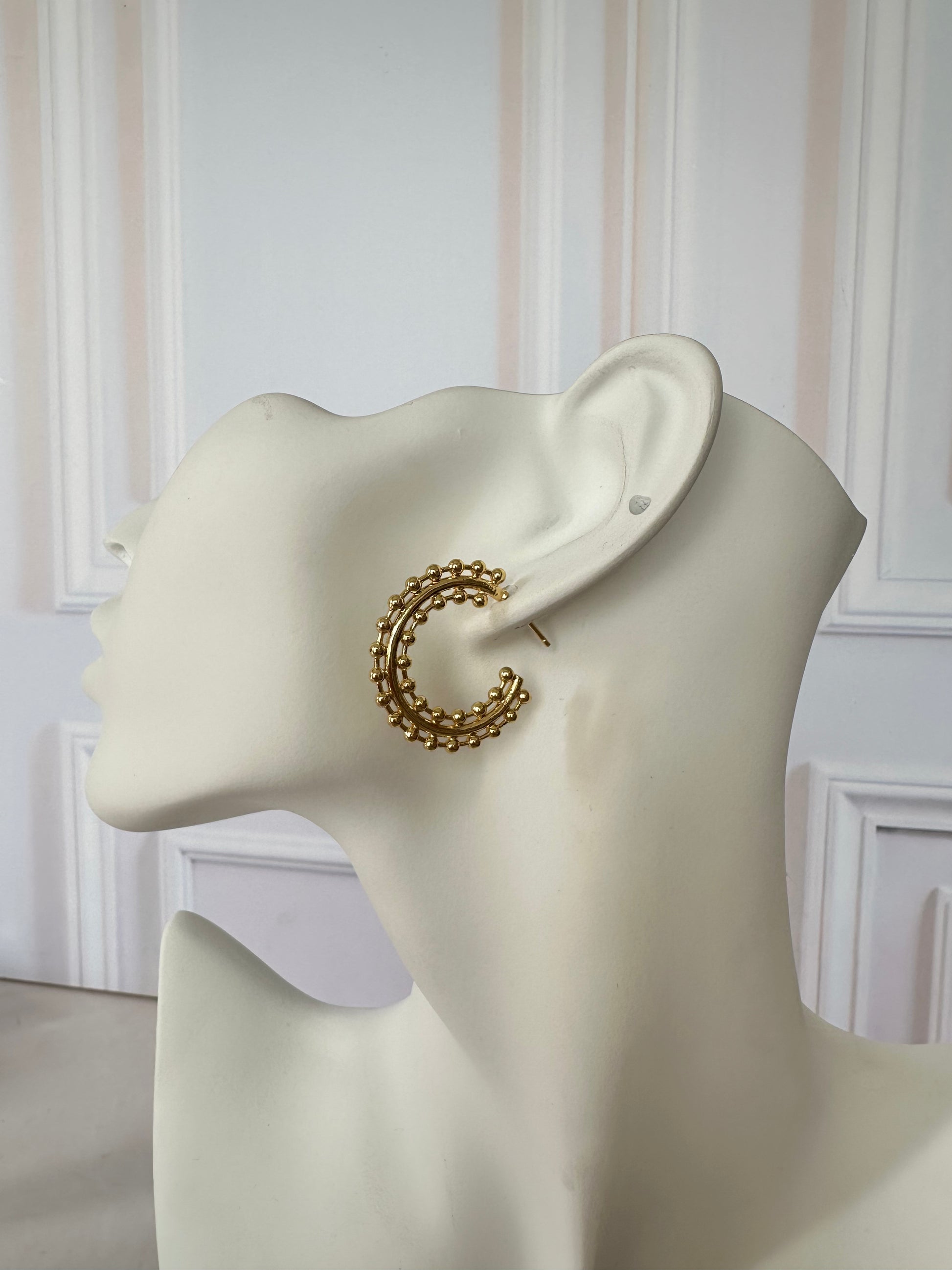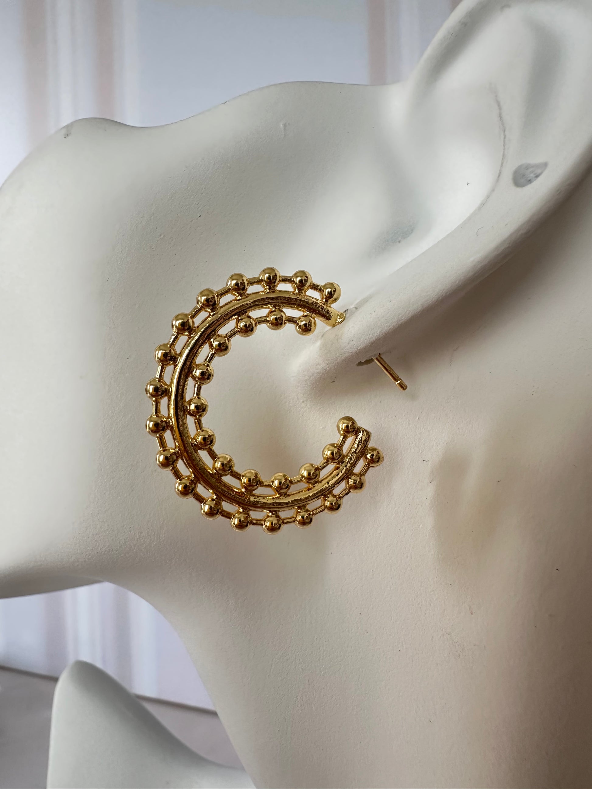 💫 Con forma de media luna, en color dorado, y tamaño Mediano, estos aretes destacan por su diseño moderno y versátil. Disponible para entrega inmediata, son ideales para usar a diario o en ocasiones especiales.