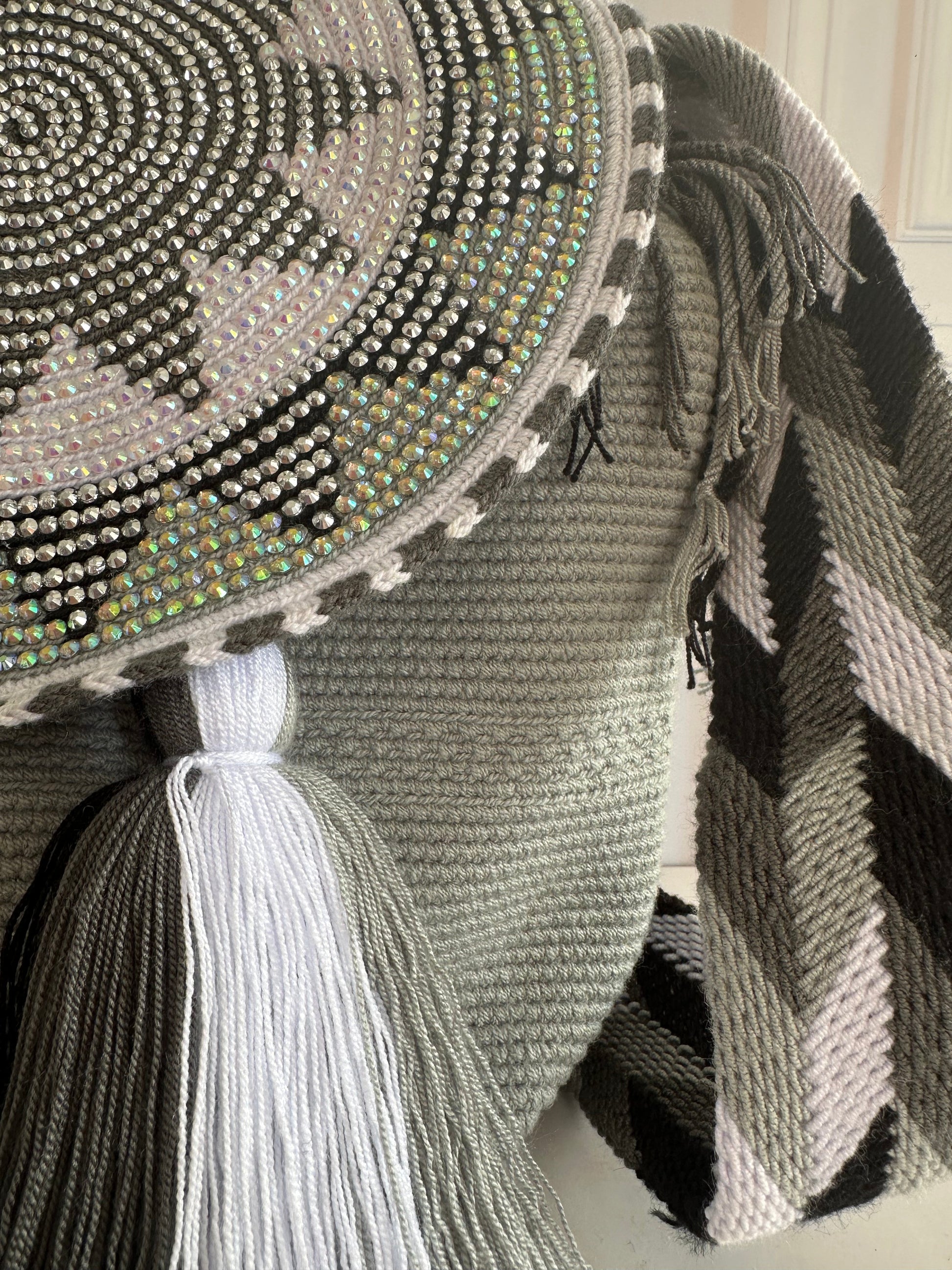 Es una mochila Wayuu grande tejida completamente a mano con hilo de alta calidad, resultado de la tradición y el arte ancestral de las mujeres Wayuu.
