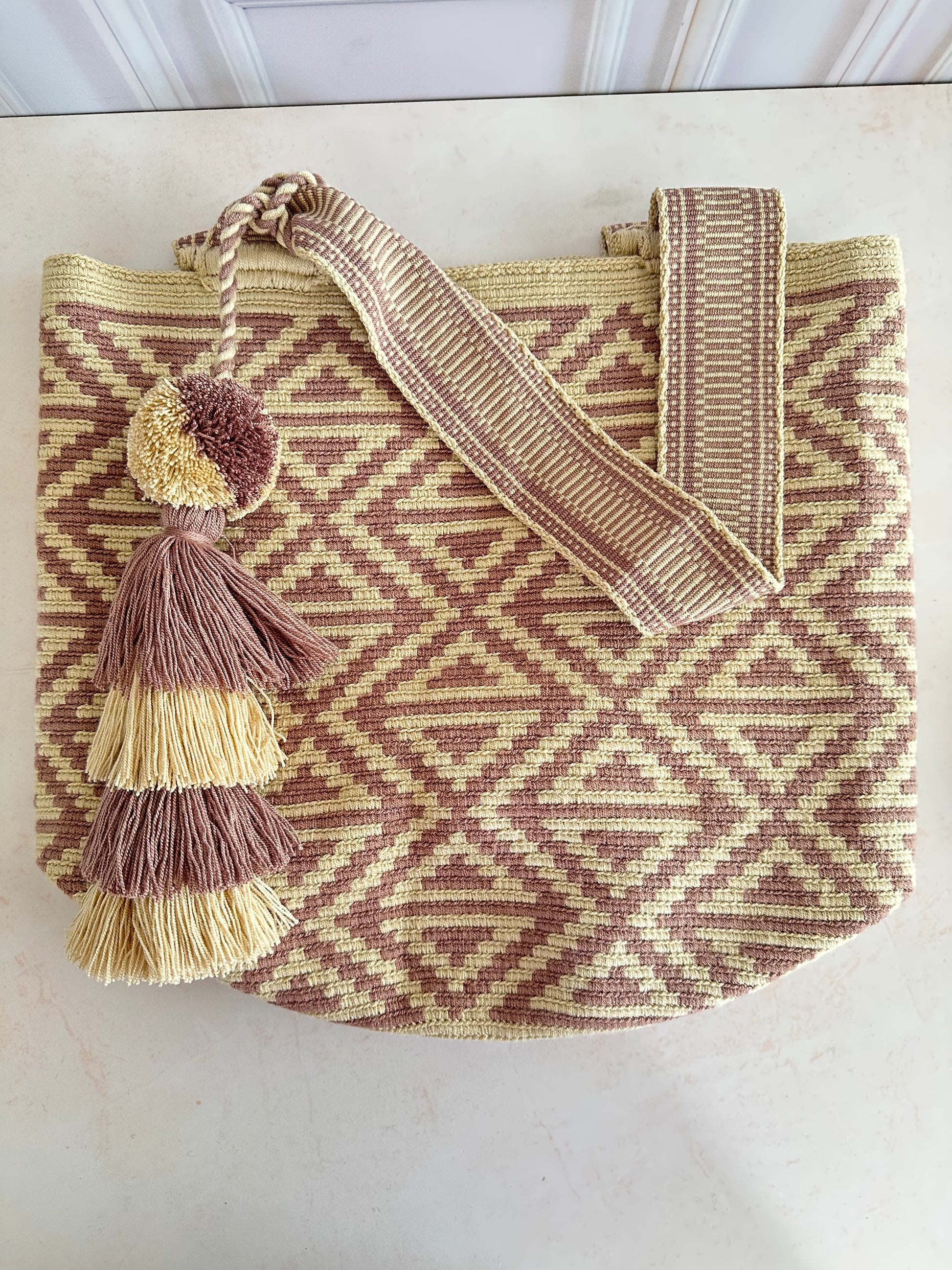 La Taniq es una mochila Wayuu maxi que combina majestuosamente el arte ancestral con un diseño moderno y elegante.
