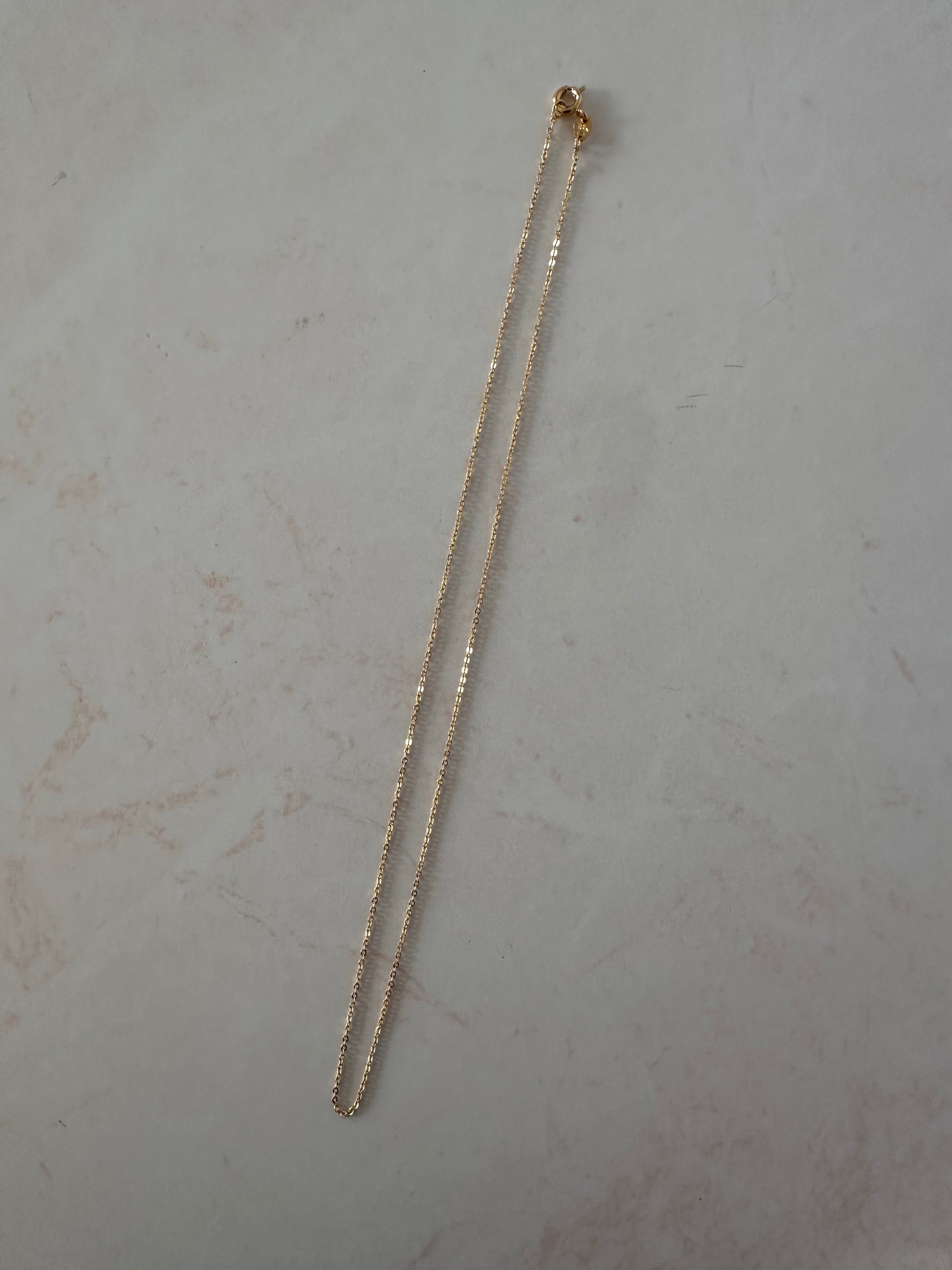 Esta Cadena , elaborada en oro laminado 18K, ofreciendo el equilibrio perfecto entre sofisticación ✨ y durabilidad 💪. Su acabado premium garantiza que mantenga su color y luminosidad como el primer día 🌟, incluso con el uso diario.