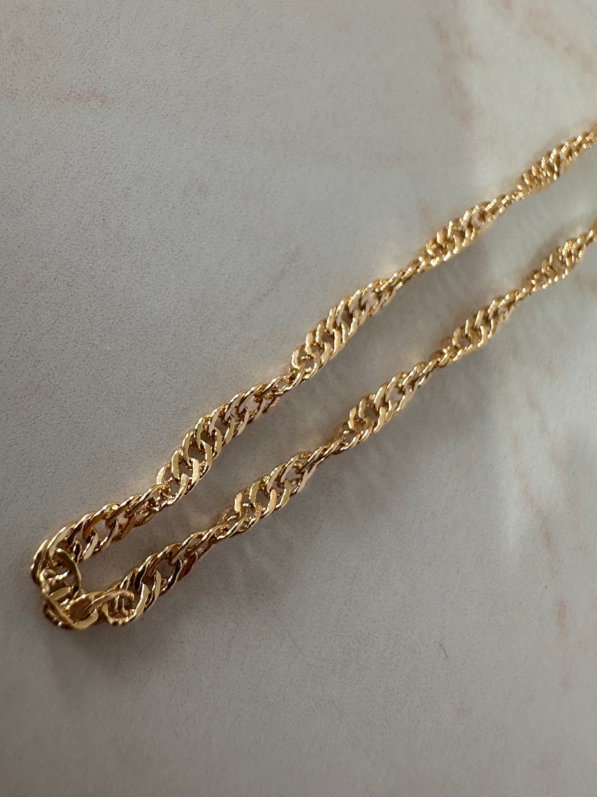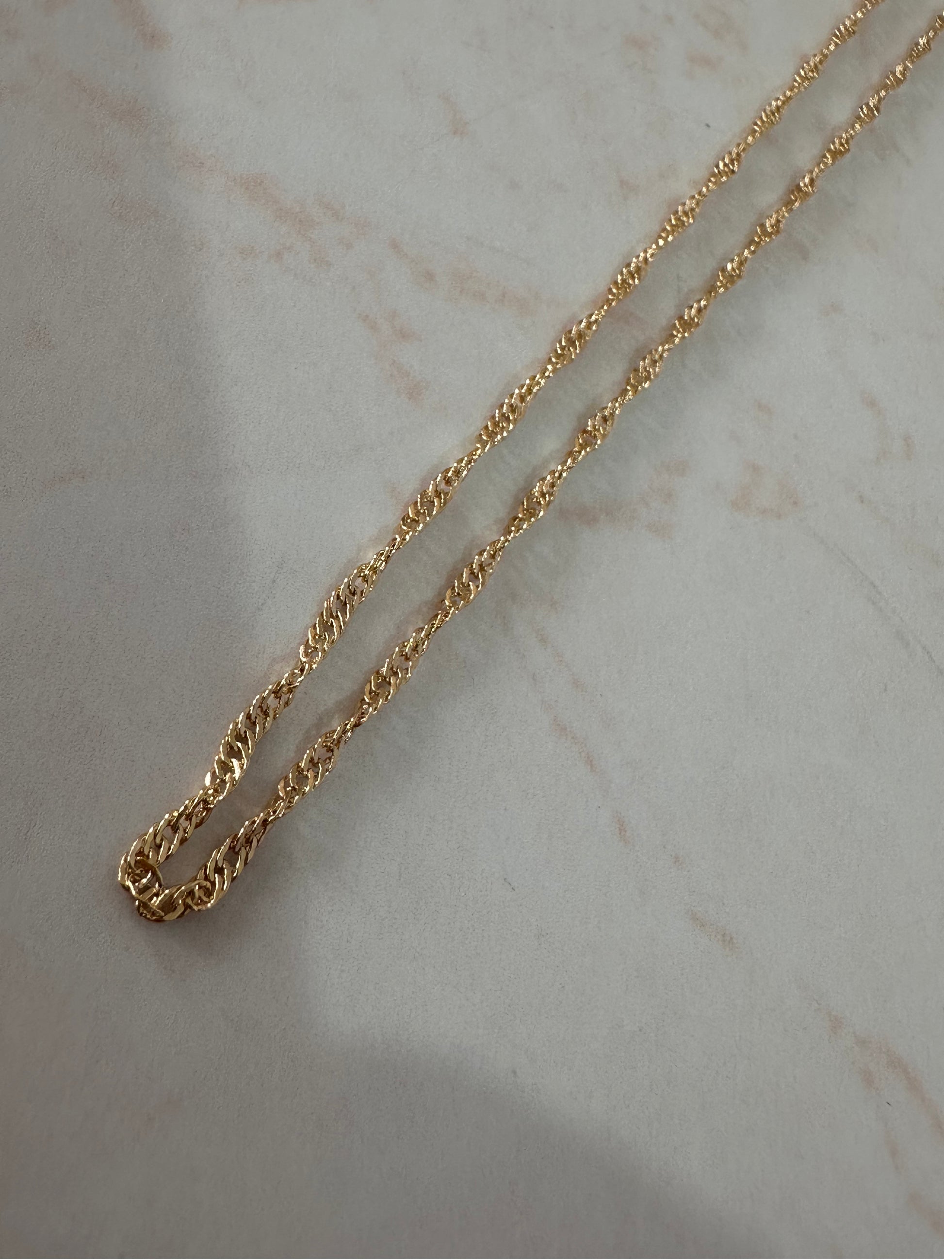 Esta Cadena , elaborada en oro laminado 18K, ofreciendo el equilibrio perfecto entre sofisticación ✨ y durabilidad 💪. Su acabado premium garantiza que mantenga su color y luminosidad como el primer día 🌟, incluso con el uso diario.